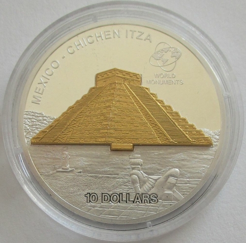 Cook Islands 10 Dollars 2007 World Monuments Chichen Itza 1 Oz Silver