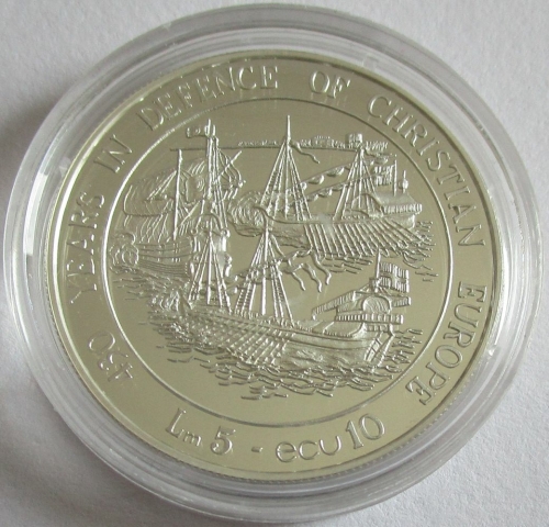 Malta 5 Liri = 10 ECU 1993 430 Years in Defence of Christian Europe Silver